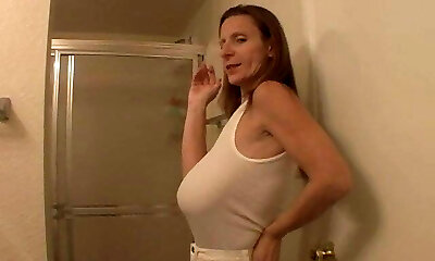 GILF with saggy boobs in a T-shirt