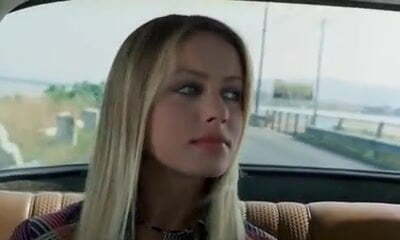 Cheeky towheaded takes off retro lingerie fucks glass dildo toy