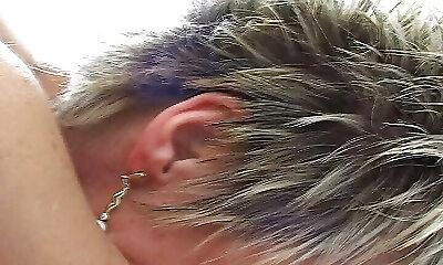 Mature harlot gets her pierced pussy and boobs gobbled by young man