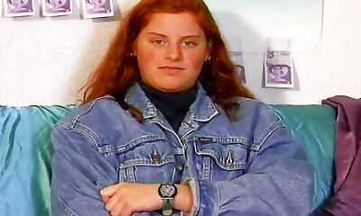 A chubby German teen showing off her shaved labia