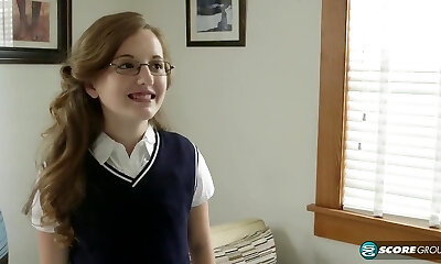 Stunning redhead milf with enormous breasts playing with a skinny blonde girl